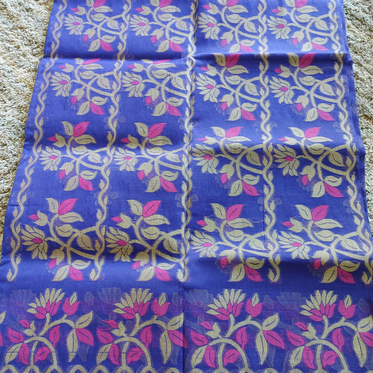 Tangail Muslin Silk Saree, Handloom, Beautiful Royal Blue with Majenta-Golden Thread Work, Elegant,Classy Party Ware