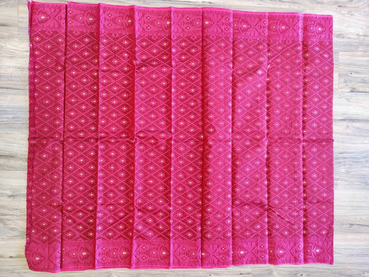 Sylheti Original Monipuri Handwoven Cotton Saree, Red with Green