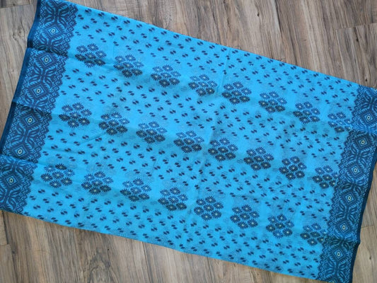 Tangail Semi-Moslin Saree, Sky blue with Black thread work, Running Blouse Piece, Made in Tangail, Bangladesh