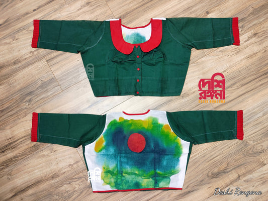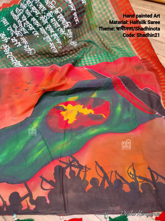 Shadhinota Theme Handpainted Half Silk Saree I Bangladeshi Flag