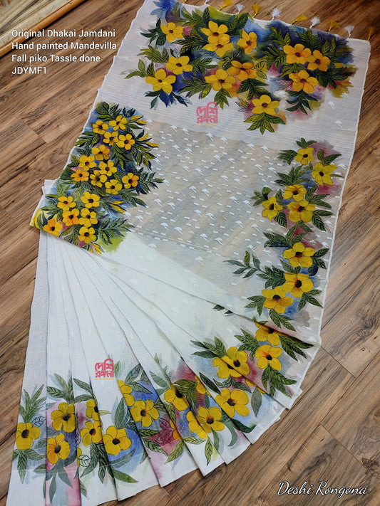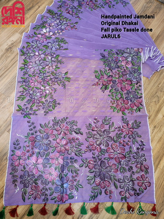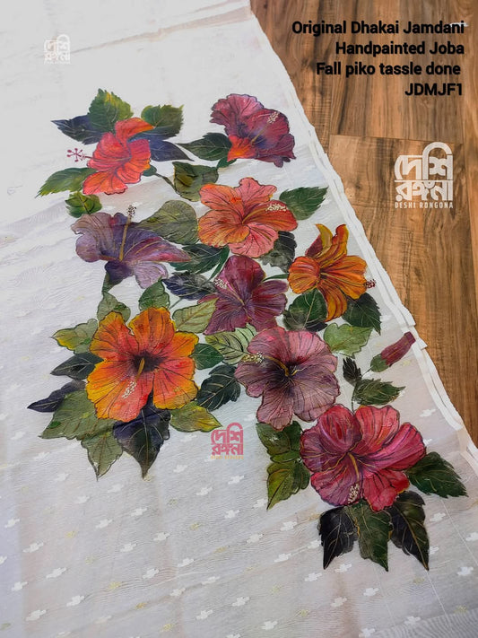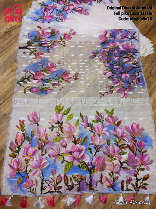 Original Dhakai Jamdani Handpainted Classy Saree, Handpainted with Acramin color, Feel special with it, Fall piko tassel done, No blouse pc