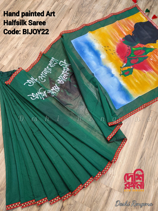 Shadhinota Theme Handpainted Half Silk Saree