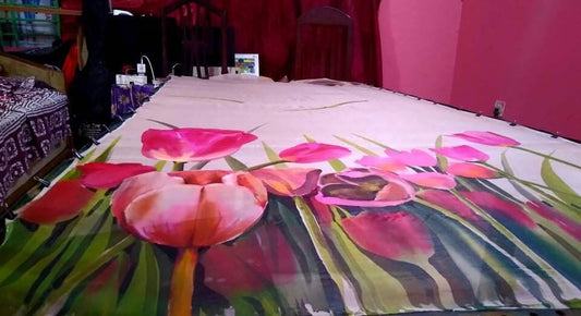 Rose Bloom Handpainted Saree on Tangail Halfsilk
