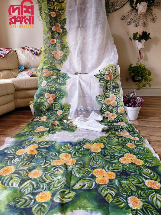 Extraordinary Bangladeshi Sophura Muslin Handpainted Saree, Water Color Art, Exclusive, Elegant, Classy Saree that you make you feel Special