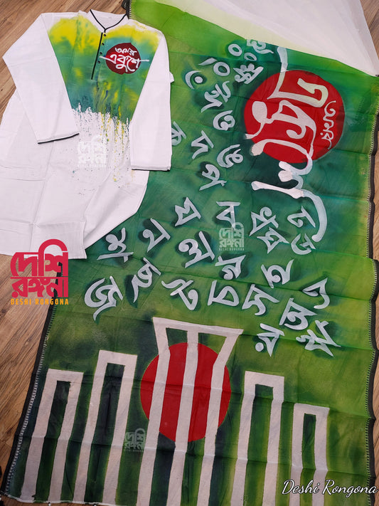 Ekush, HandPainted Halfsilk Saree, Bangladeshi Ekushe theme, International Mother Language Day, Blouse, Matching Punjabi Available