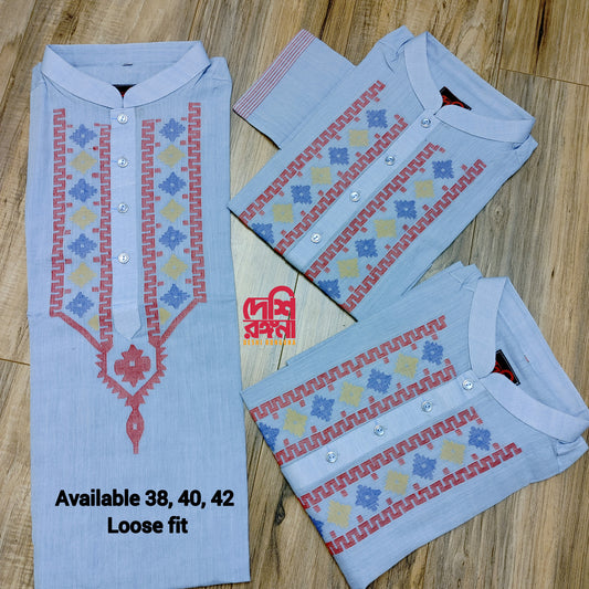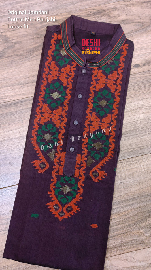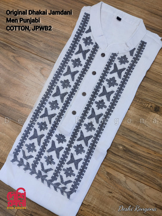 Original Dhakai Jamdani Punjabi, Pure Cotton, Handloom, Comfortable, Elegant, Made in Dhaka, Bangladesh, Silm Fit
