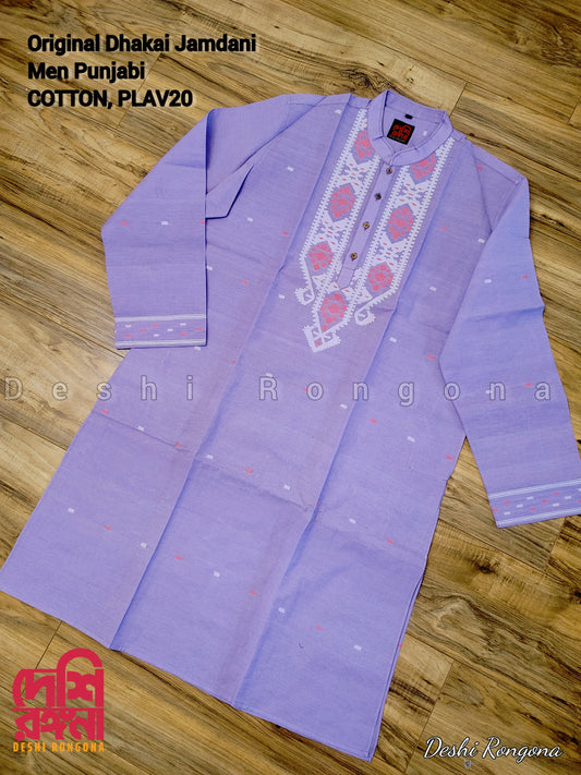Original Dhakai Jamdani Punjabi – Handwoven Pure Cotton, Lilac Lavender