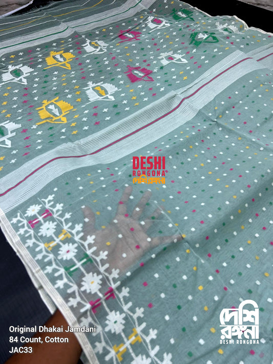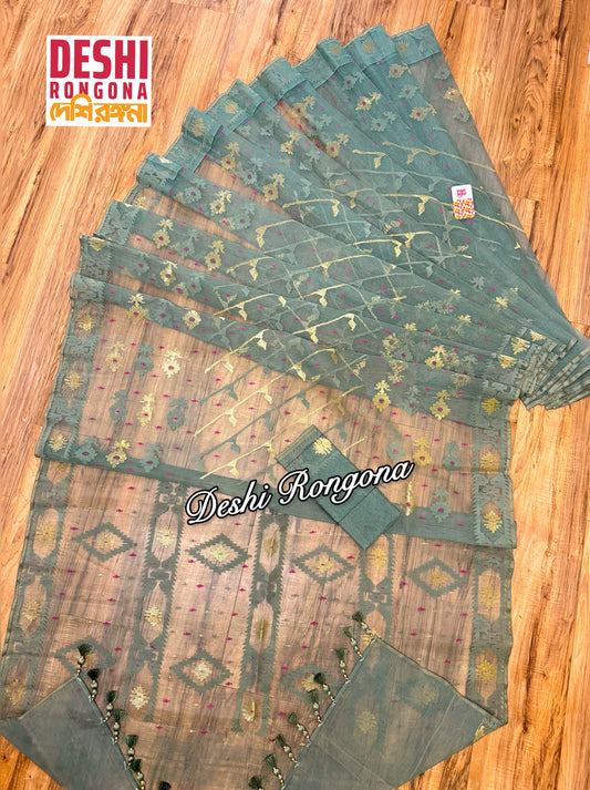 Elegant Sage Green Dhakai Jamdani Saree - Handloom Classic