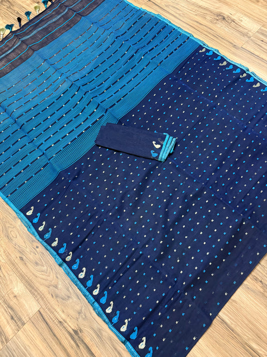 Elegant Blue Sage Dhakai Jamdani Saree - Handloom Classic