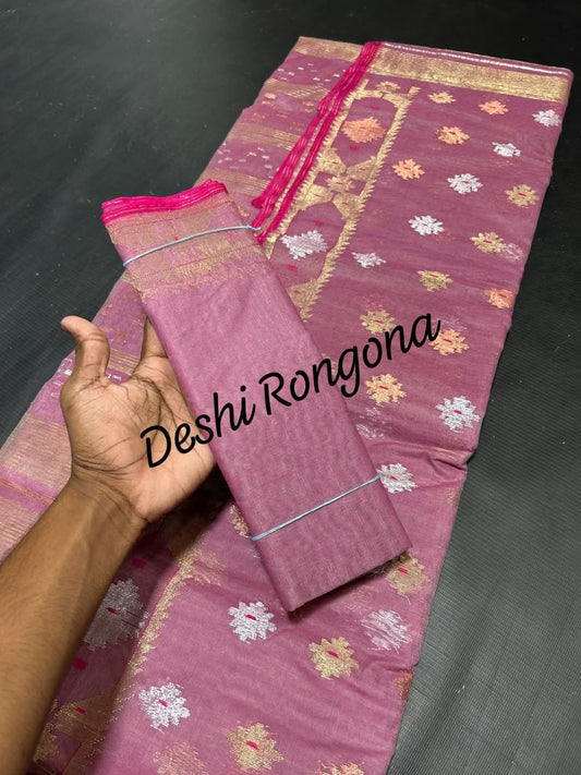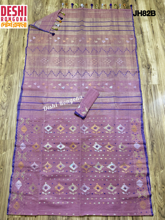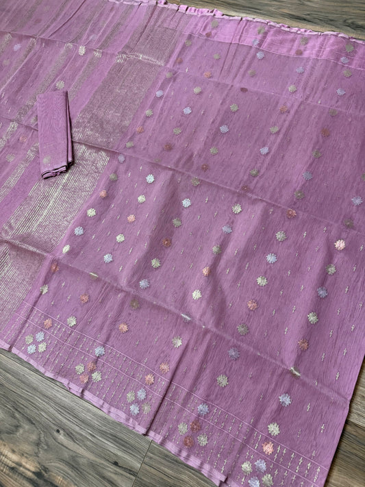 Handwoven Dhakai Jamdani Saree – Pink Mauve Halfsilk