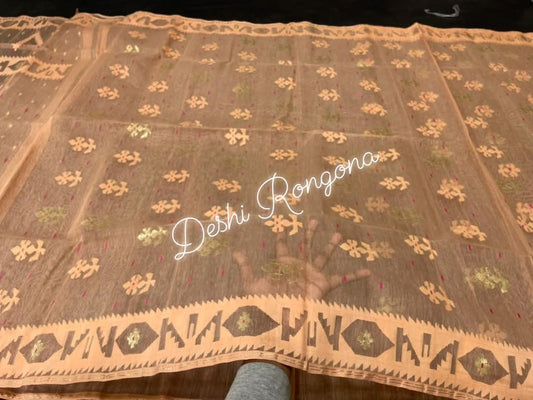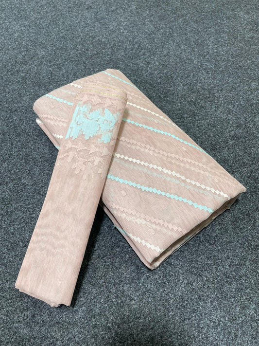 Handwoven Dhakai Jamdani Saree – Peach Halfsilk