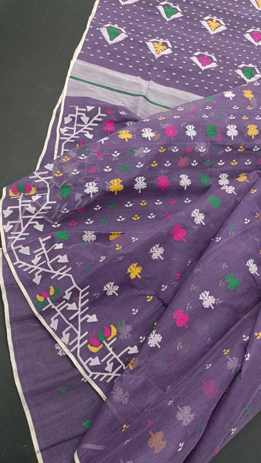 Elegant Pure Cotton Dhakai Jamdani Saree - Purple Mauve