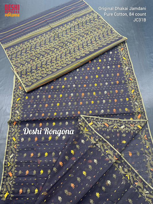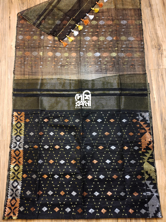 Elegant Dhakai Jamdani Saree, Classic Surma Black