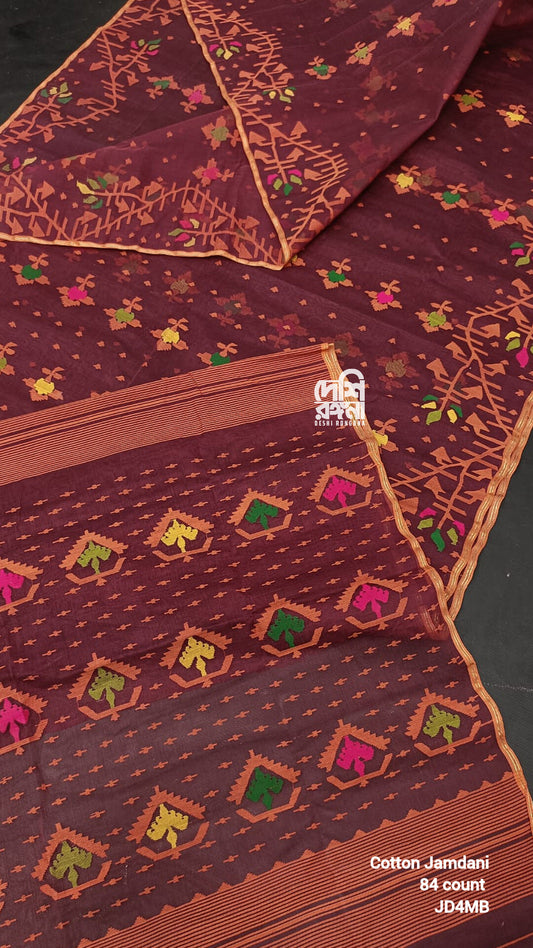 Elegant Pure Cotton Dhakai Jamdani Saree- Maroon