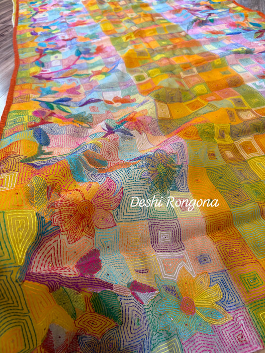 Original Moslin Hand Embroidery work Saree, Bangladeshi Pure Sopura Muslin, Super Soft, Light Weight, Draps well, Colors/Designs available