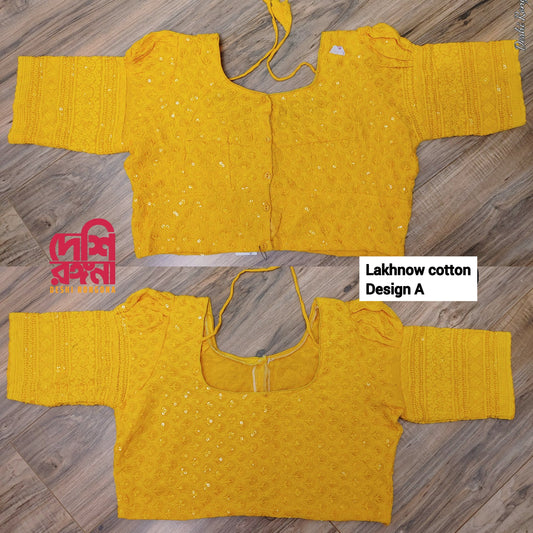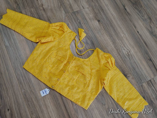Readymade Lakhnaw Cotton Yellow Blouse, Mustard Yellow Ready Designer Blouse, Embroidered, Comfortable, goes with any saree of your closet