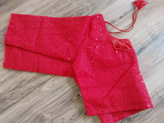 Red Blouse, Readymade Red Lakhnow Georgette Blouse that goes with any saree collection you have in your closet