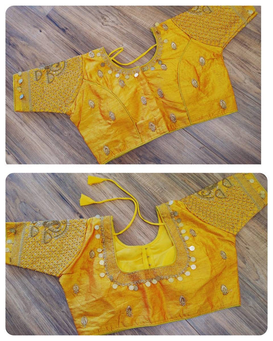 Elegant Readymade Yellow/Mustard Blouse that goes with any Yellow contrast saree collection you have in your closet