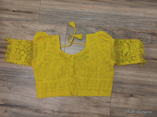 Yellow Readymade Blouse, Lakhnow Georgette Ready Blouse, Fashionable, Trendy, Comfortable, goes with any contrast saree collection