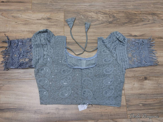 Gray Readymade Blouse, Lakhnow Georgette Ready to wear Blouse, Fashionable, Trendy, Comfortable, goes with any contrast saree collection