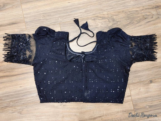 Sleeveless Sequined Blouse, Free Size 38 / alter upto 42 Readymade Party Blouse.