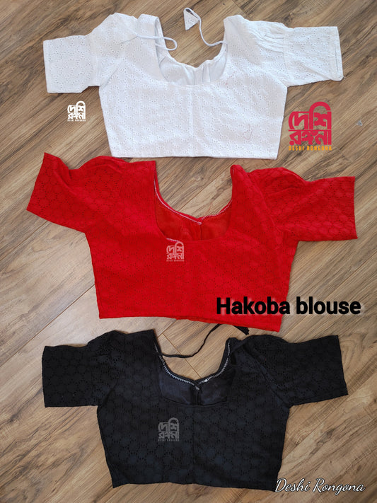 Hakoba Cotton Blouse, Size 34 to 42, Red, Black, White Colors, Comfortable, goes with any saree collection you have, no extra fabric inside