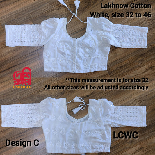 White Lakhnow Cotton Blouse, Size 34 to 48, Comfortable, goes with any saree collection you have in your closet