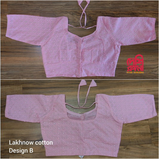 Readymade Lakhnaw Cotton Pink Blouse, Baby Pink Readymade Designer Blouse, Embroidered, Comfortable, goes with any contrast saree