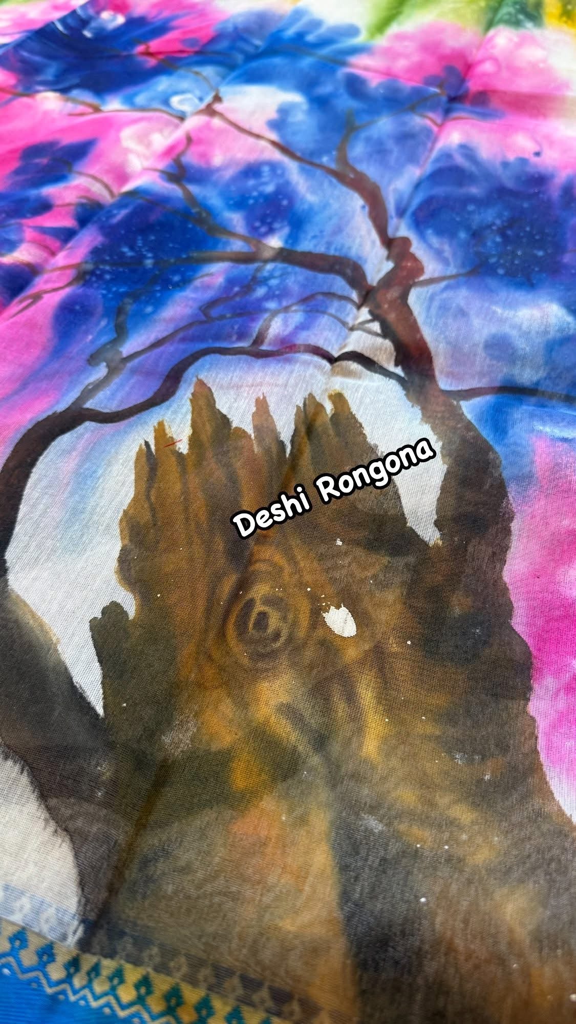 Abstract Watercolor – Handpainted Half Silk Saree