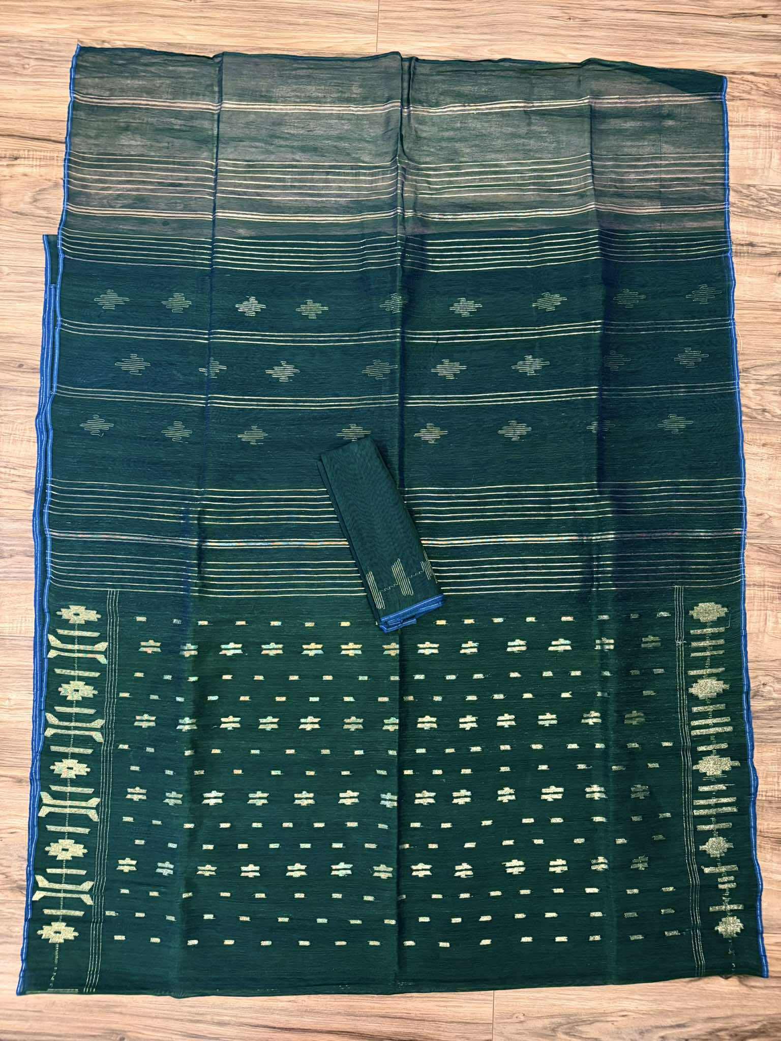 Bangladeshi Dhakai Jamdani Saree- Bottle Green