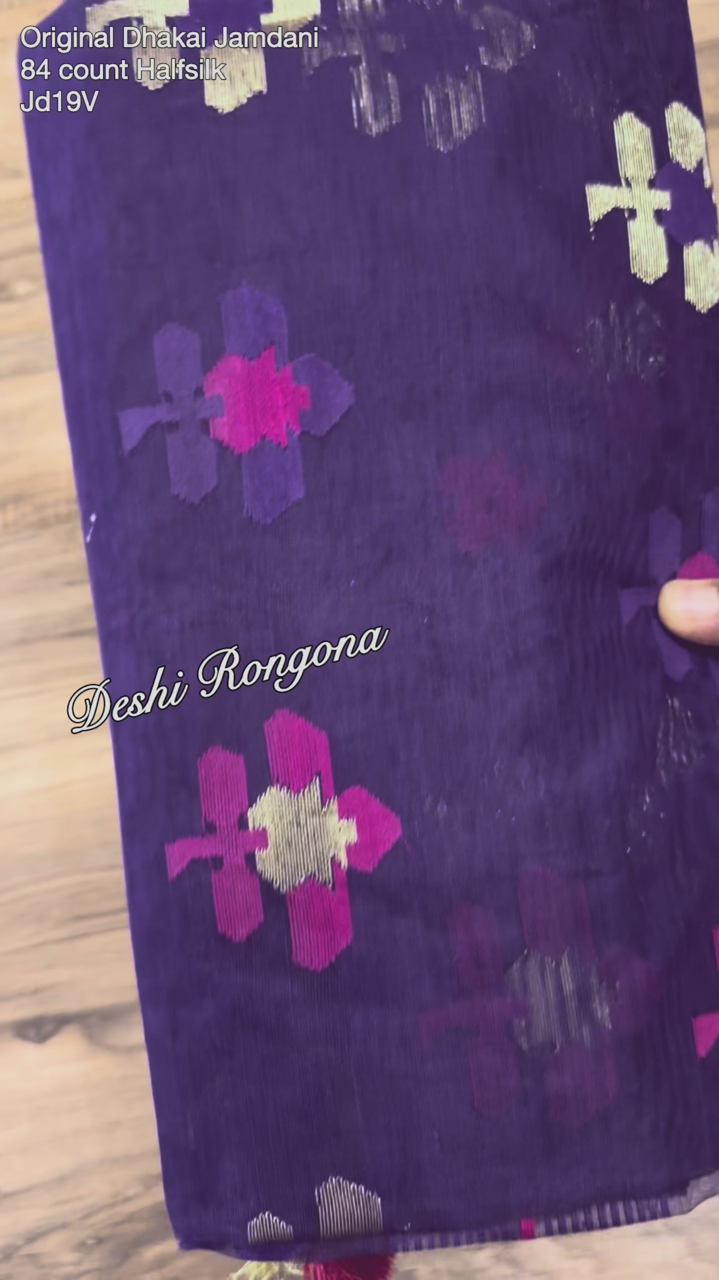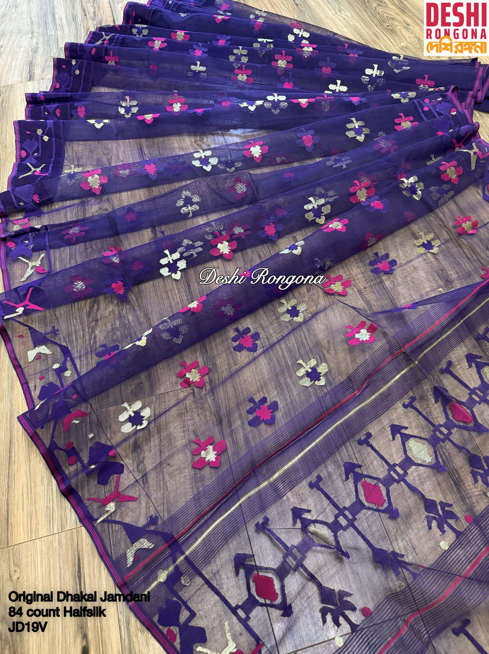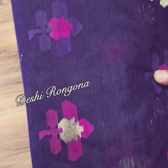 • 84 Count Halksilk Dhakai Jamdani in Violet purple color