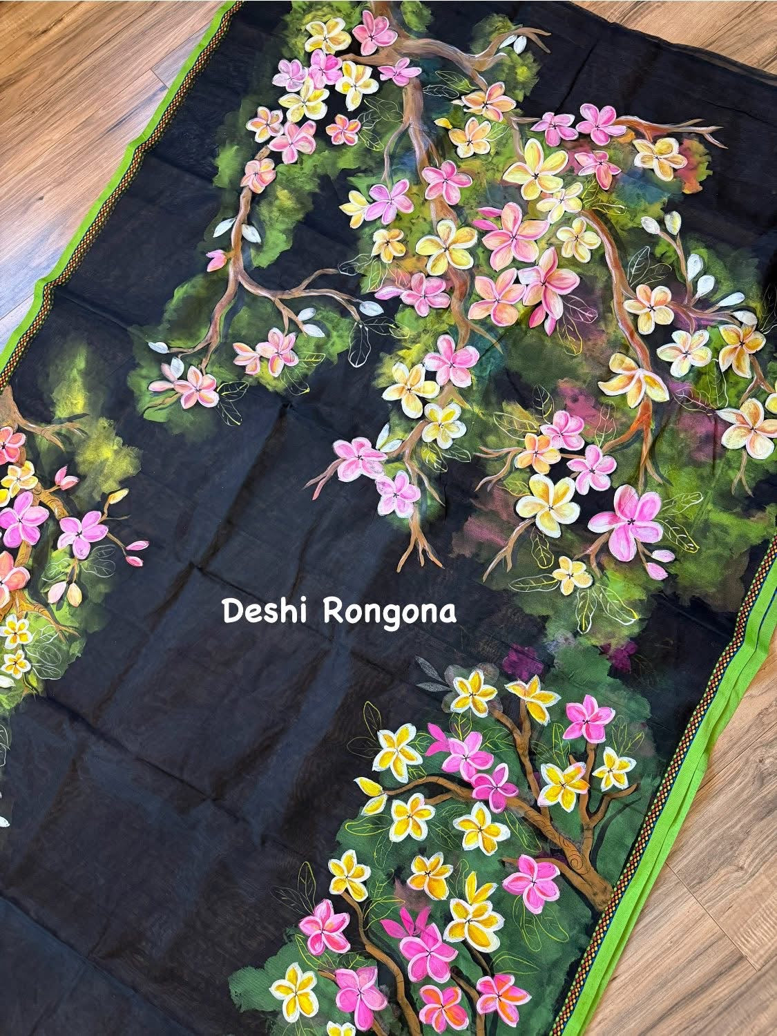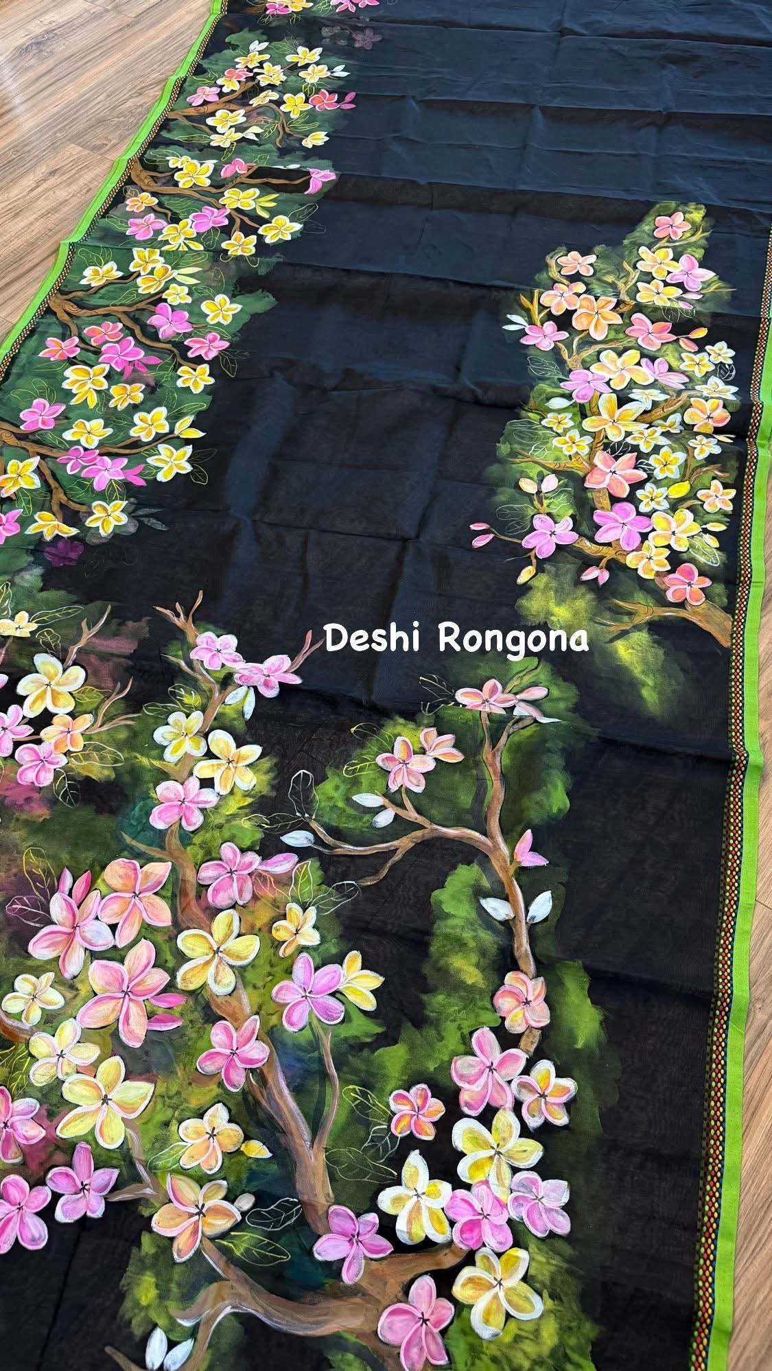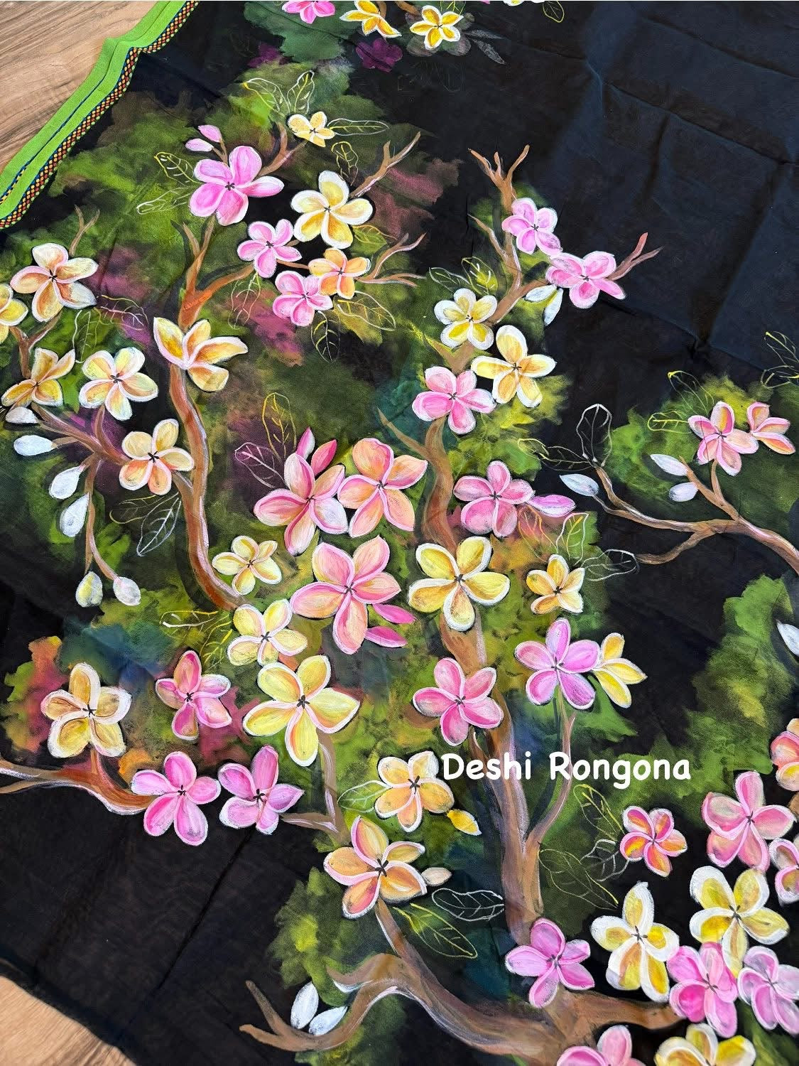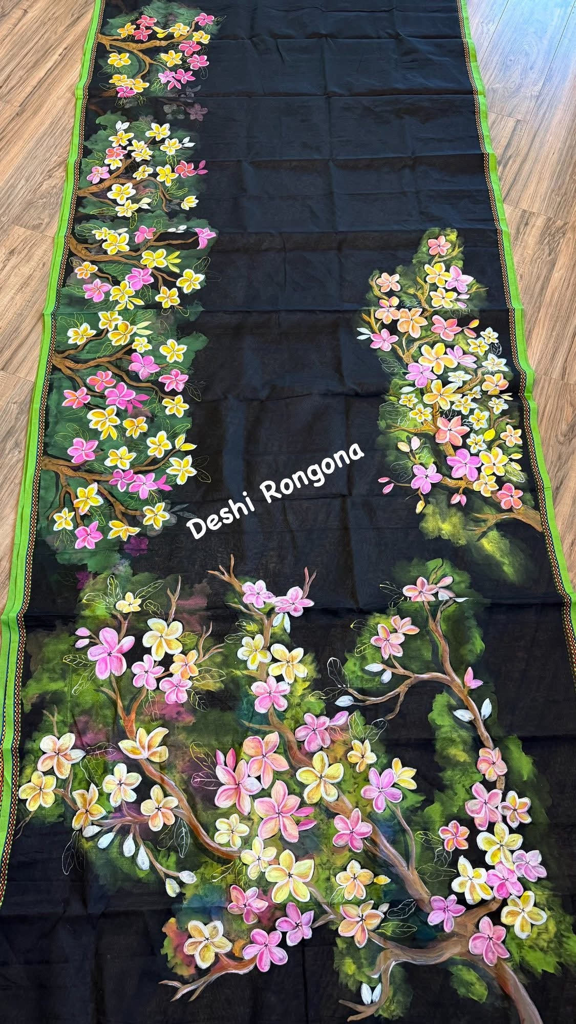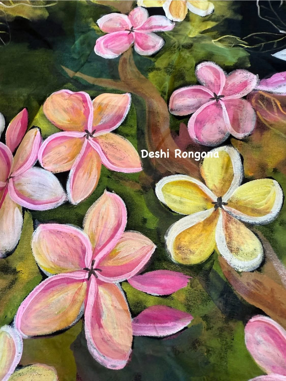 HandPainted Handloom Halfsilk Saree, Beautiful Plumeria painted with Acramin color. Aarong Cotton Punjabi Set
