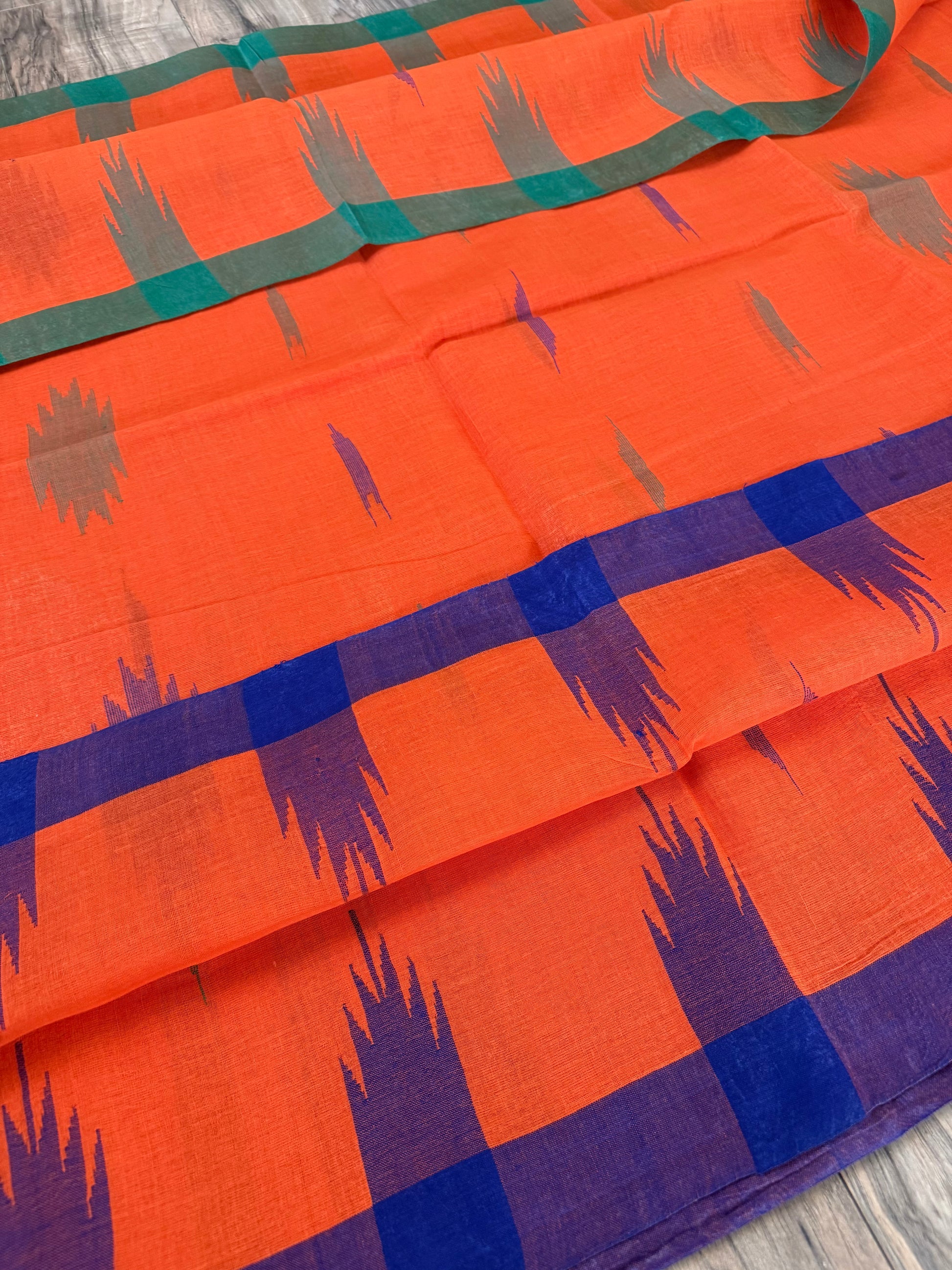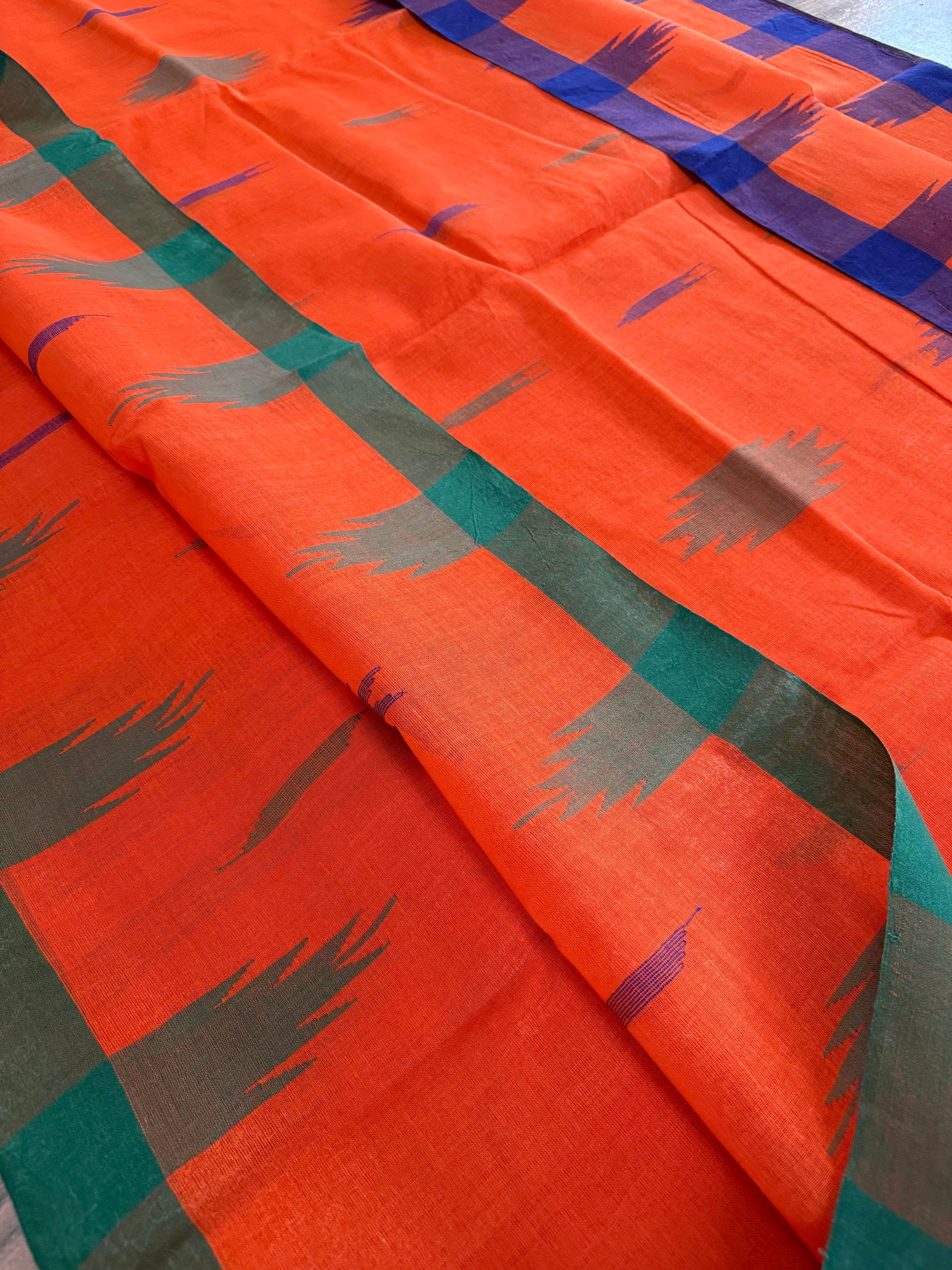 Sylheti Monipuri Handwoven Cotton Saree– Orange