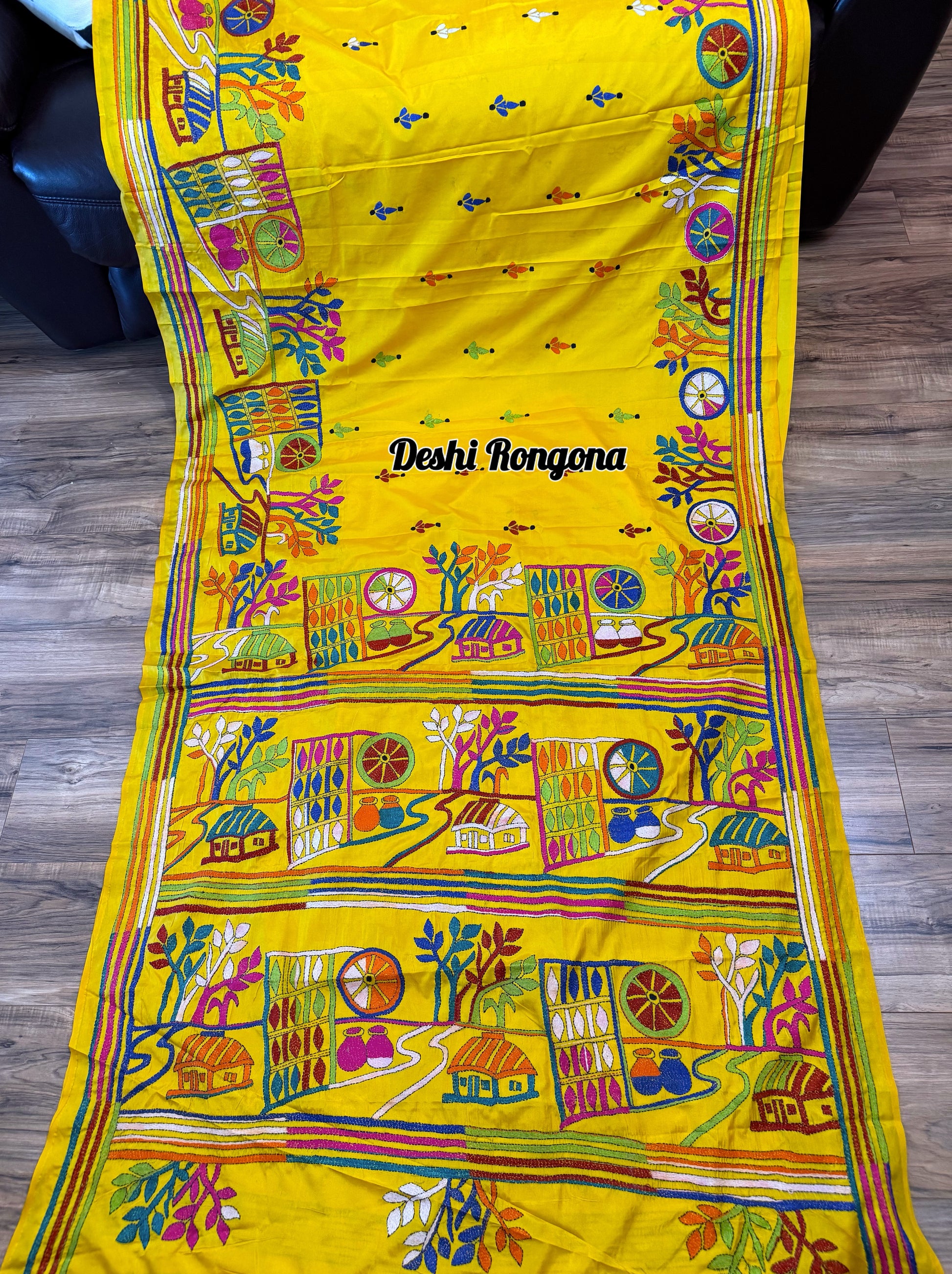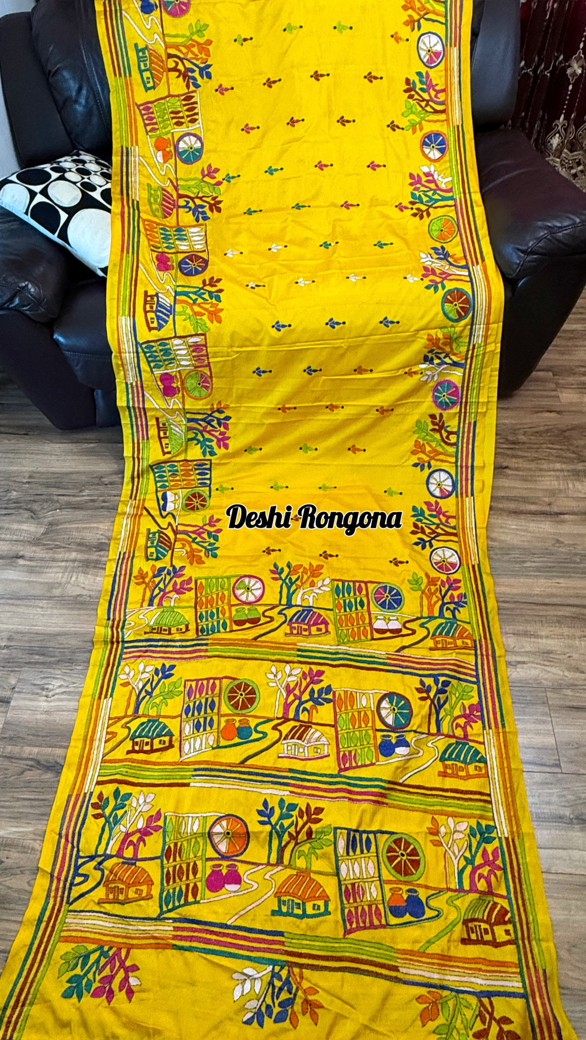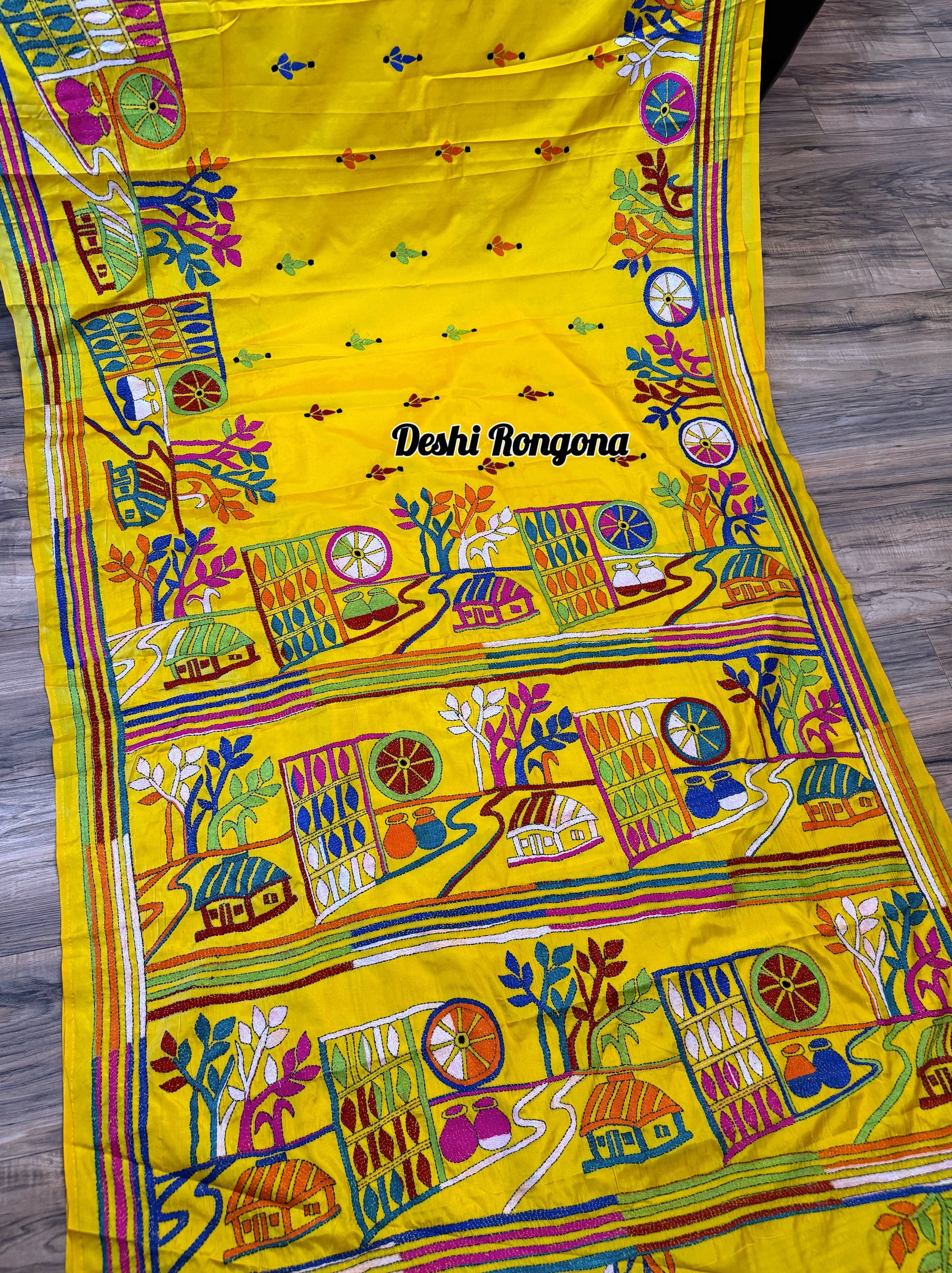 • Embroidery: Hand-stitched Multi color Kantha Work, village theme