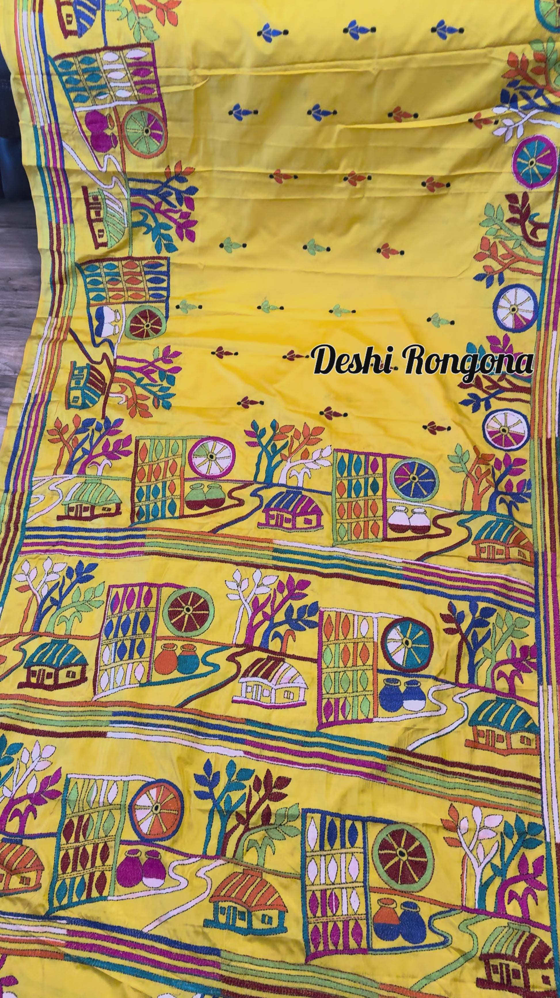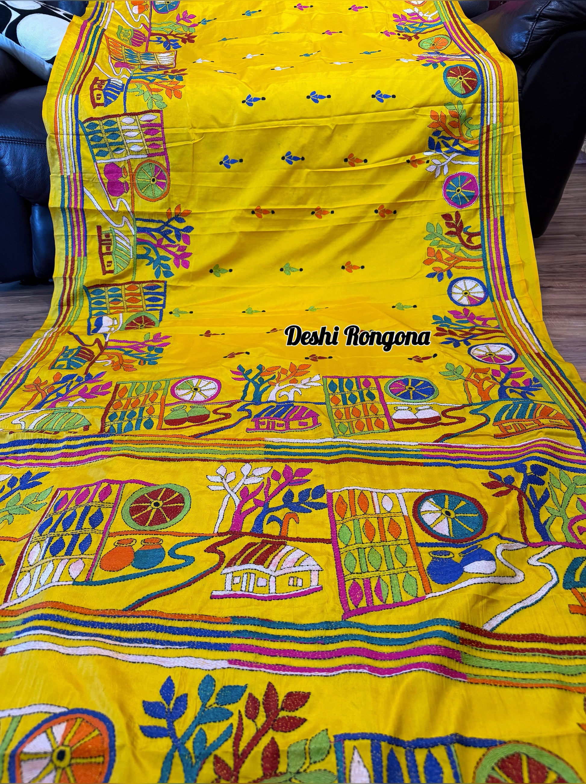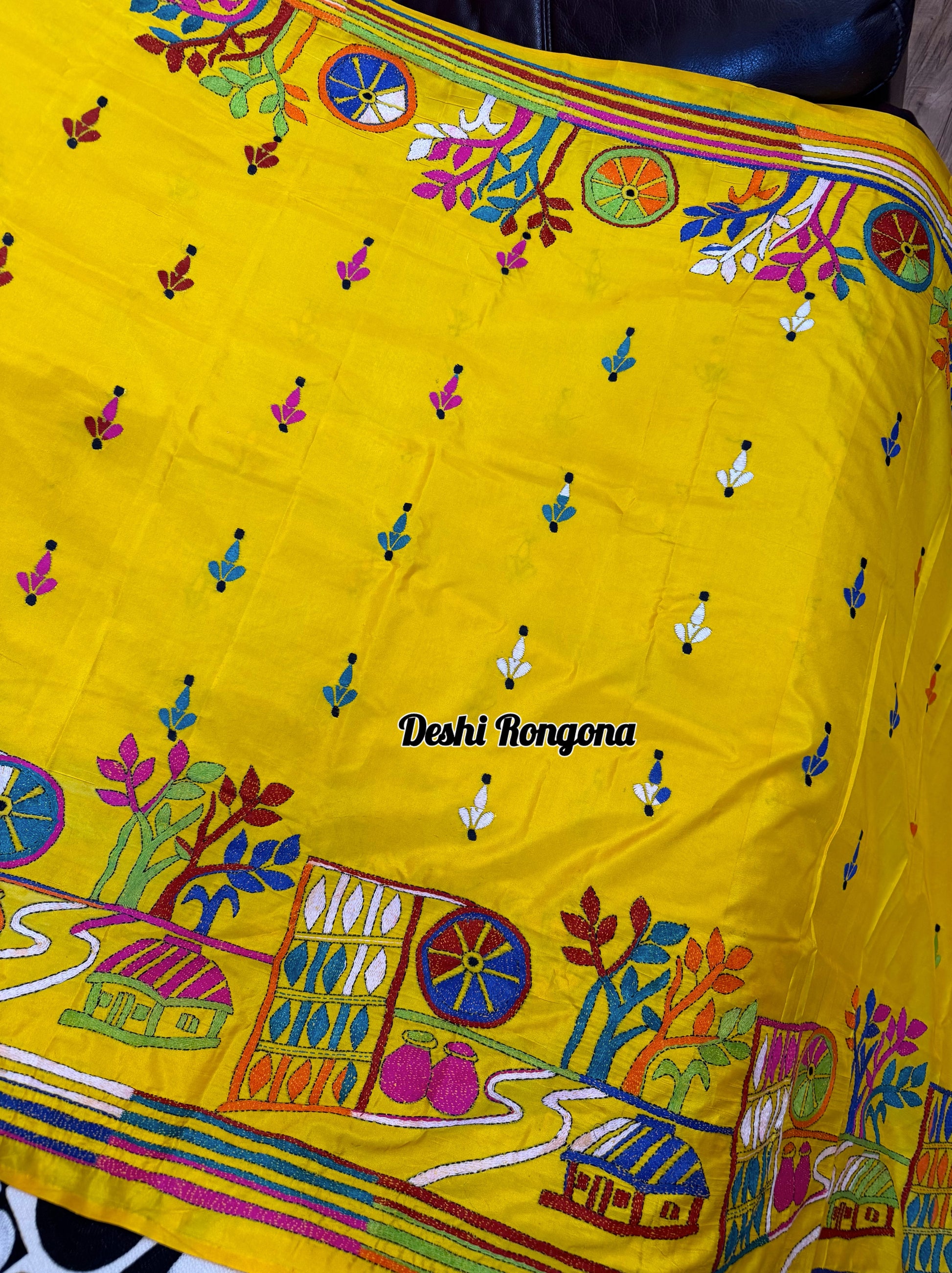 • Embroidery: Hand-stitched Multi color Kantha Work, village theme