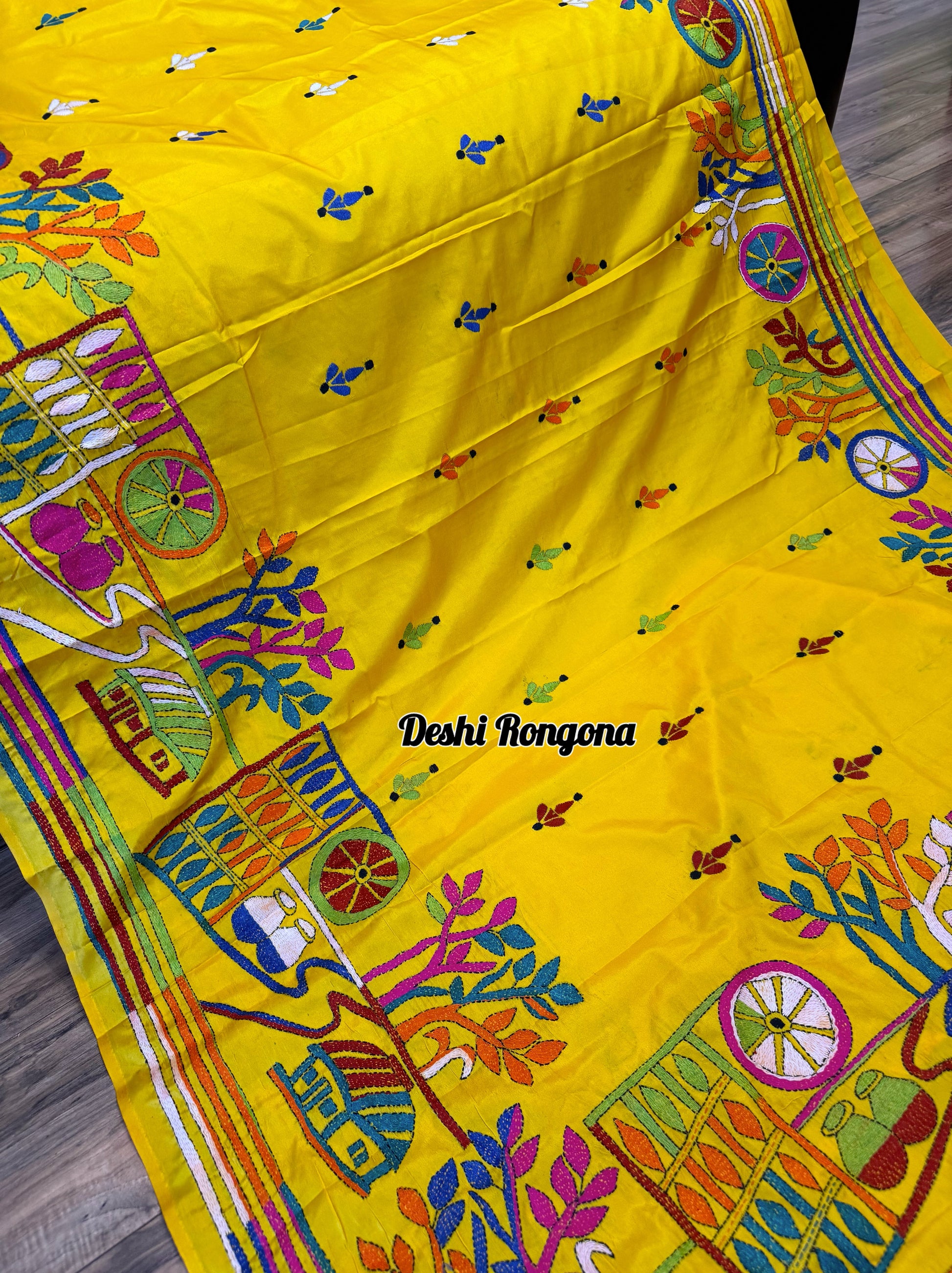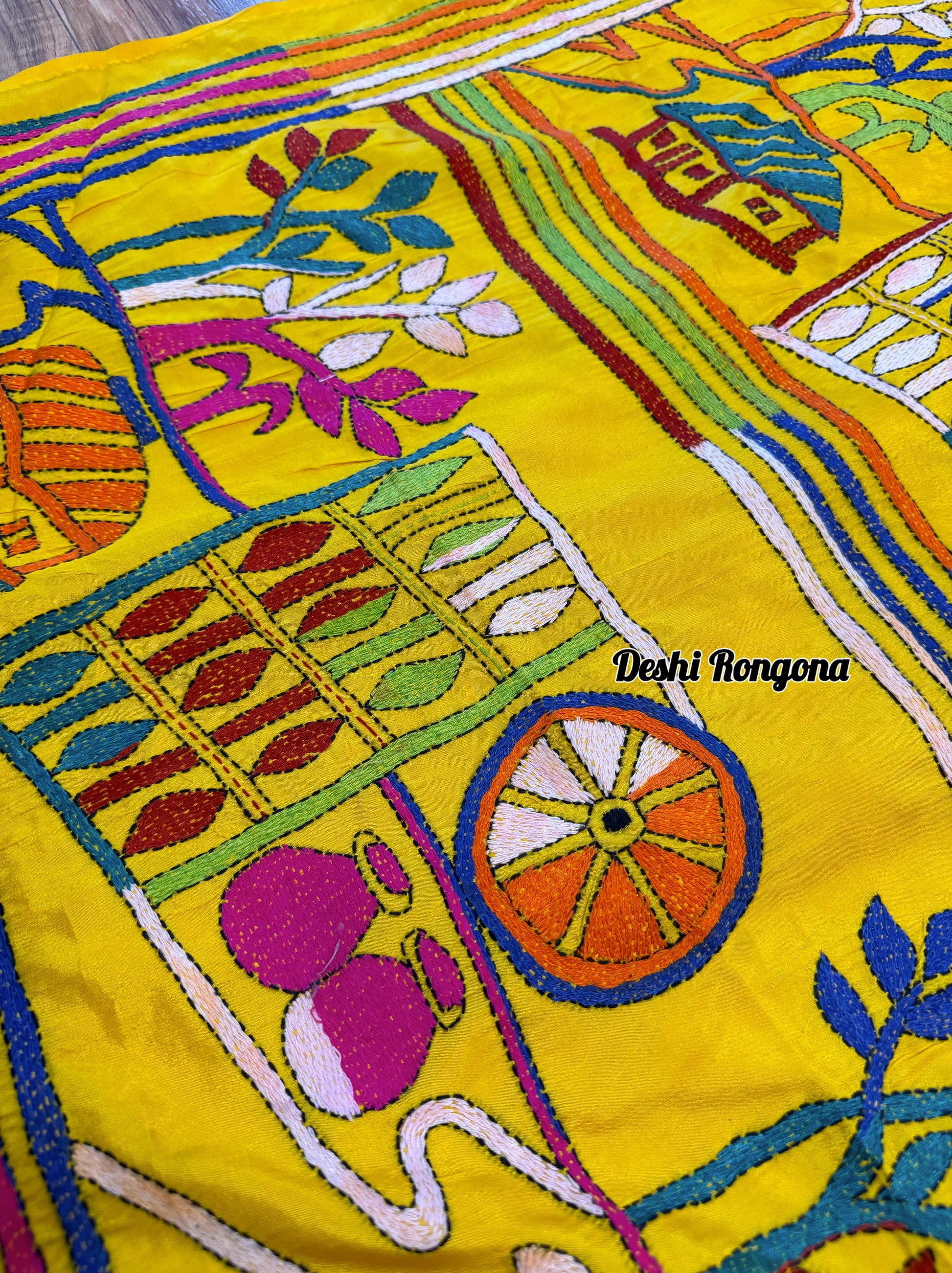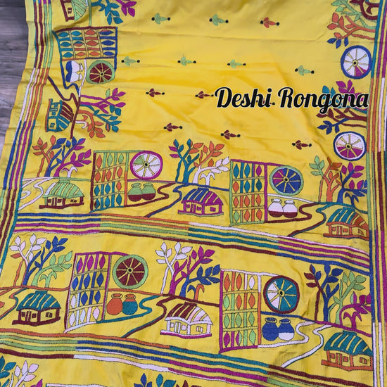 Yellow Bangalore Silk Kantha Saree